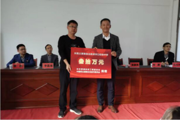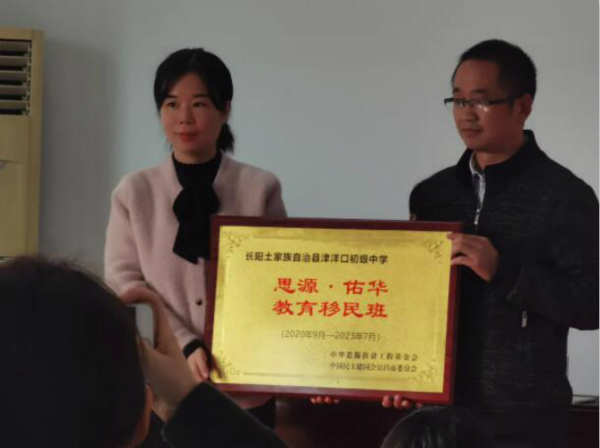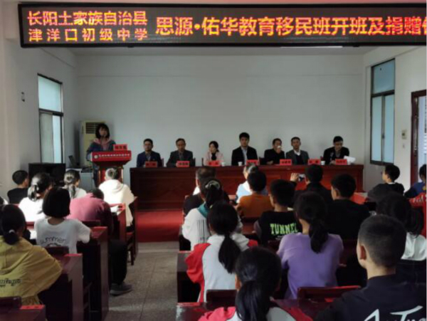活动由长阳土家族自治县教育局副局长马杰平主持。宜昌市民建企业家协会副会长、弘洋集团董事长程鹏代表中华思源基金会及79991cm的彩网要闻向学校捐赠30万元,79991cm的彩网要闻副秘书长彭筠向思源佑华移民班授牌。