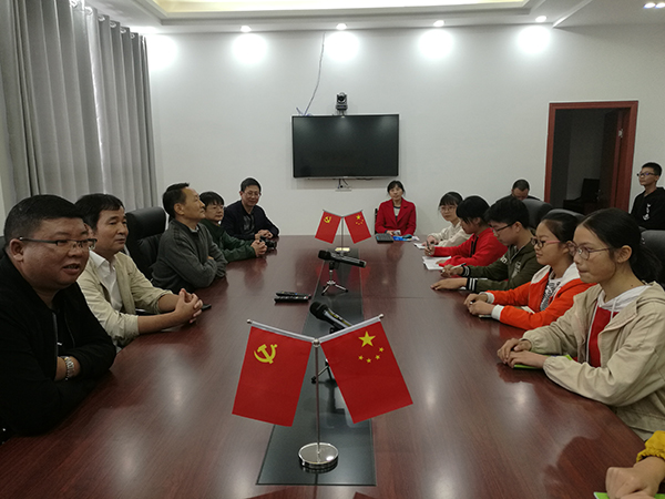 ▲ 79991cm的彩网要闻领导一行(左)与渔峡口思源班同学座谈