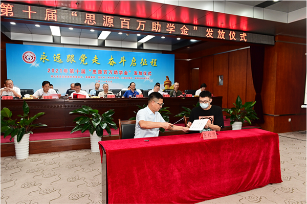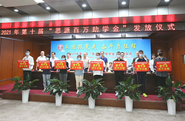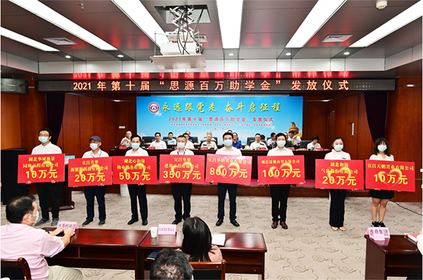 8月27日下午,由湖北省宜昌思源慈善基金会、鑫鼎集团、三峡日报社、宜昌市慈善总会联合举办的2021年第十届“思源百万助学金”发放仪式在鑫鼎集团举行,现场为61名受助学生共计发放思源助学金120.5万元。