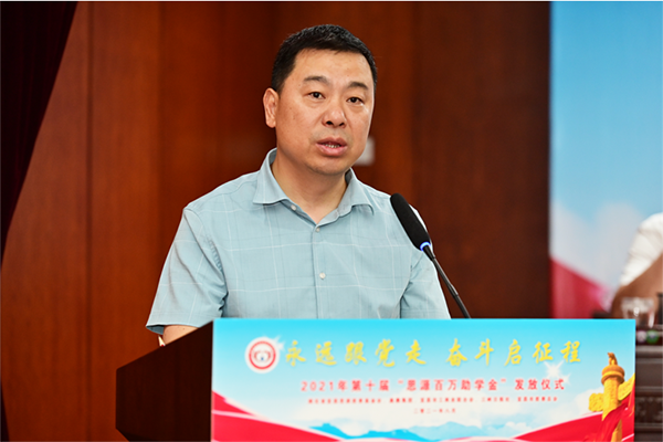 市委常委、统战部部长王均成对参与捐赠的各位爱心企业家和爱心人士表示衷心感谢,向各位学子致以亲切的问候和美好祝愿。他说“思源百万助学活动”作为一项传递爱心、温暖人心的善事义举,已成长为一项长期的、具有深远影响力的社会公益项目,成为我市教育领域资助覆盖面最广、资助金额最多、社会影响力最大的知名慈善品牌,为弘扬社会主义新风尚、促进社会文明进步发挥了重要作用。他勉励学子们树立克服困难、自强不息的信心和勇气,继续发扬五四精神,抓住求学进步的黄金期,在今后的学习和生活中勤学习、求真知、悟真谛、长才干,练真本领,争做坚定理想信念、矢志奋斗拼搏的新时代青年。他希望思源慈善基金会能够继续坚守初心,奉献大爱,办好“思源百万助学”品牌项目,承担好自身的社会责任,搭建好联系捐资者和受助者之间的感情桥梁,与宜昌市人民同心携手,为更多的贫困学子圆求学之梦,推动这项深受敬重的公益事业不断健康发展。同时,希望广大企业家们继续守正创新、守法经营,站在“两个一百年”的历史交汇点上,以“舍我其谁”的担当,发挥优势开展各种慈善公益项目,乐善好施、多行义举,争当富不忘本、富而有德的热心人。积极贯彻新发展理念、融入新发展格局,勇于投身乡村振兴、生态环保、转型升级等实践中,敢闯敢试、敢干敢为,为宜昌干在实处、走在前列、当好引擎、争当表率贡献智慧和力量。