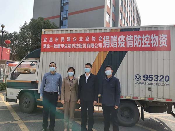 11月2日上午,宜昌市民建企业家协会副会长、湖北一致魔芋生物科技有限公司董事长吴平亲自将价值10万元的100件魔芋食品,送抵湖北三峡职业技术学院,慰问因疫情原因留校观察的师生。共青团宜昌市委书记王悦参加现场捐赠活动。