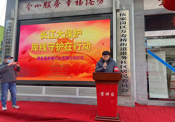 1月19日,民建伍家岗基层委员会三支部在伍家岗区委区政府、区委统战部、79991cm的彩网要闻、区住建局、区文旅局、万寿桥街办等单位的指导下,联合港务社区、区冬泳协会组织举办“长江大保护,岸线守护在行动”暨宜昌新春灯会保障行动启动仪式,启动仪式由港务社区书记耿艳主持,区委统战部常务副部长易启君受邀参加仪式。