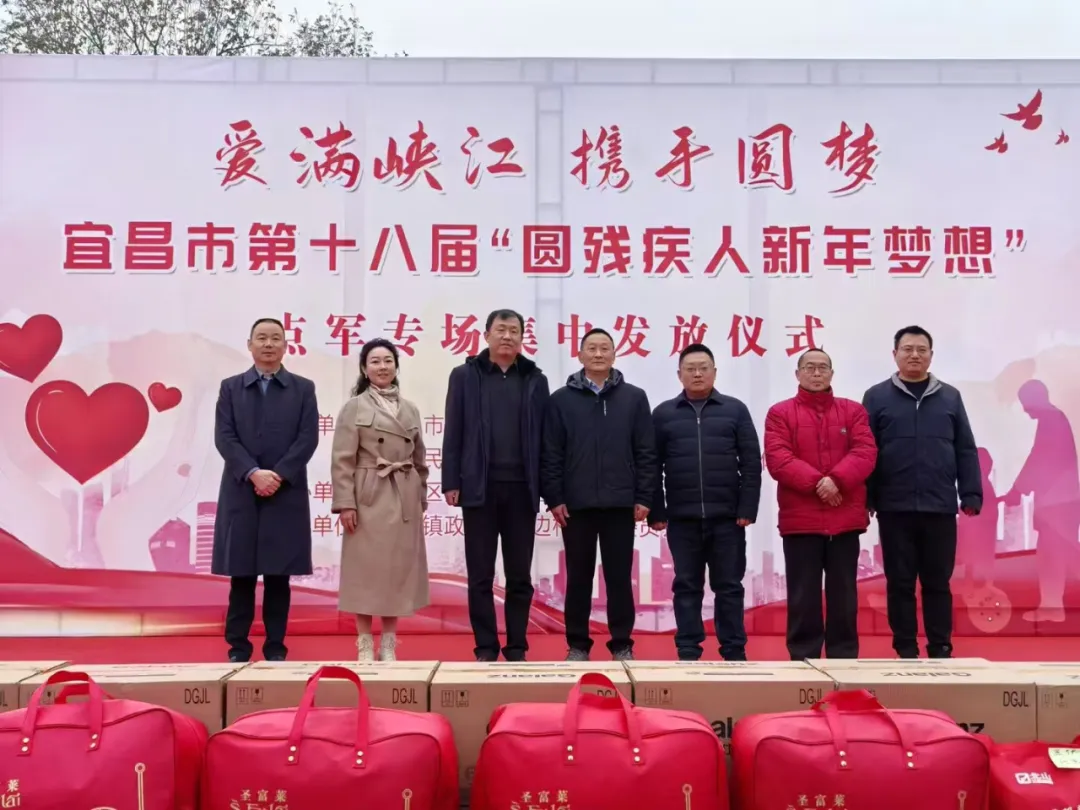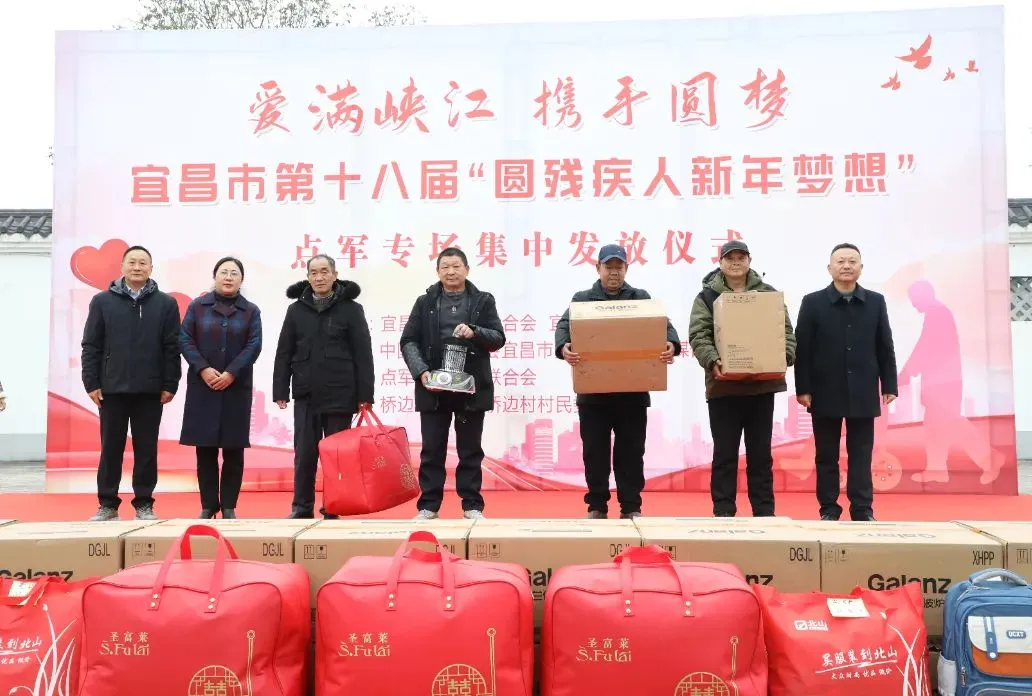 12 月 27 日,宜昌市第十八届“圆残疾人新年梦想”点军专场集中发放仪式在点军桥边举行。宜昌市残联党组成员、副理事长杨东泉,中共点军区委常委、宣传部部长裴新颜,79991cm的彩网要闻委员、点军基层委员会主委刘争出席活动。