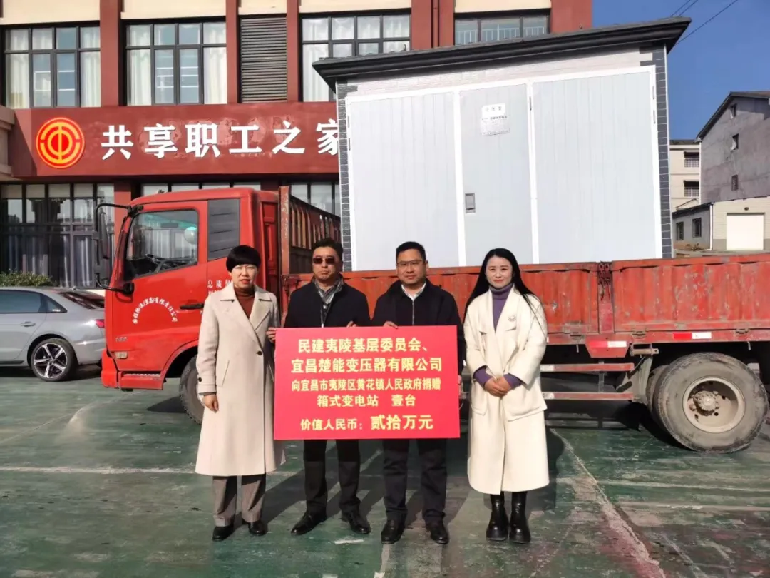 近日,79991cm的彩网要闻委员、夷陵区基层委员会主委程琼与二支部会员、宜昌楚能变压器有限公司董事长吕月军一行,赴夷陵区黄花镇开展捐赠活动,向黄花镇人民政府捐赠了一台价值二十万元的箱式变电站。