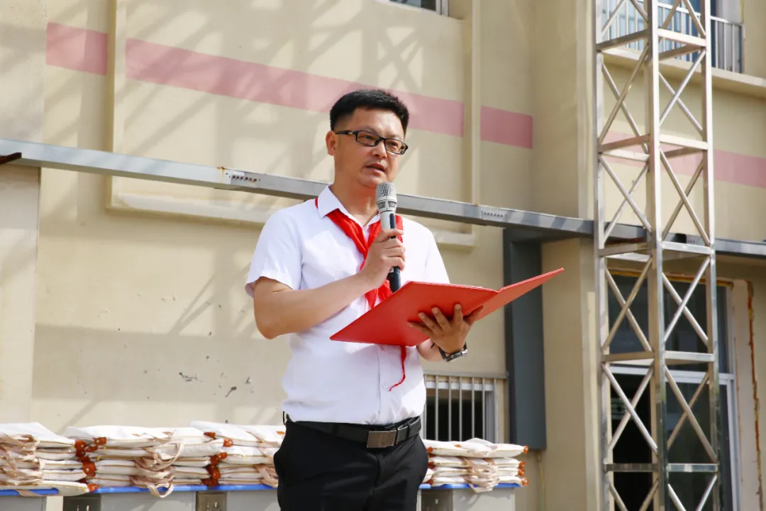 捐赠仪式在学校操场举行。当阳市教育局、民建当阳市基层委员会代表与泉州希望小学全体师生共同见证了这一温暖时刻。仪式在少先队员为嘉宾佩戴红领巾的庄重氛围中拉开序幕。方运志代表民建当阳市基层委员会,郑重地将承载着全体会员爱心的5万元善款捐赠牌递交到泉州希望小学校长手中。