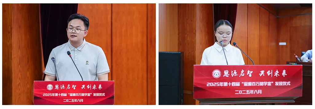 仪式现场,曾受资助的学生代表徐梦迪同学分享了在爱心滋养下的成长故事,用自身经历生动诠释了向阳奋进、爱心传递的温暖力量。即将踏入华中科技大学的本届受助生代表吴佳颖同学,则轻声许下承诺:“定会把这份爱传递下去,未来努力成为那个能为他人撑伞的人。”