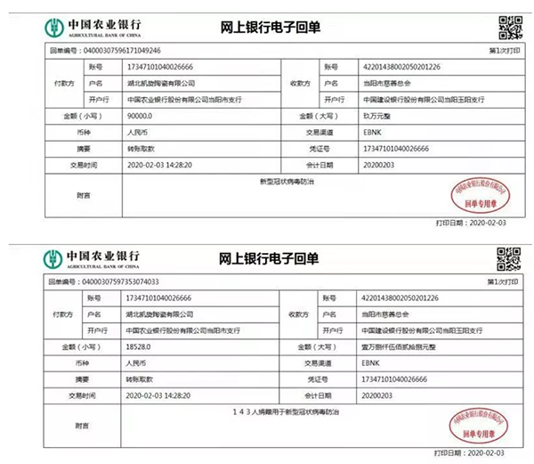 1月31日14时起,在民建会员企业湖北凯旋陶瓷有限公司总经理张仲宝的号召下,公司员工为此次新冠肺炎疫情自发捐款,截止2月3日15时,凯旋陶瓷捐款10万元,并有143位员工自愿捐款18528元,累计金额达到118528元;