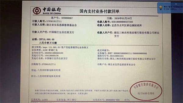 2月9日,远在江苏省扬州市江都区小纪镇蒲塘村的宜昌民建会员王茂庆以苏扬机电设备安装工程有限公司名义,捐献1万元支持宜昌疫情防控工作。