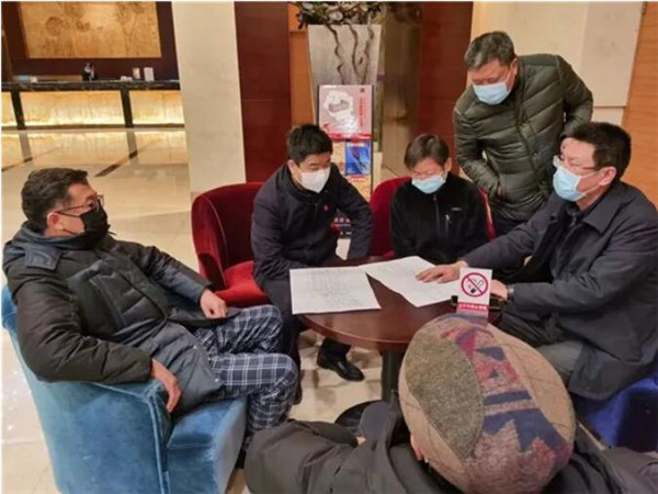 2月17日晚,在均瑶大酒店,市住建局党组成员、总工程师袁庆华,向宜昌市建筑装饰协会疫情防控应急指挥部指挥长彭康、副指挥长康志平下达应急指令:迅速组织应急突击队,筹备宜昌市三医院病房改造项目。