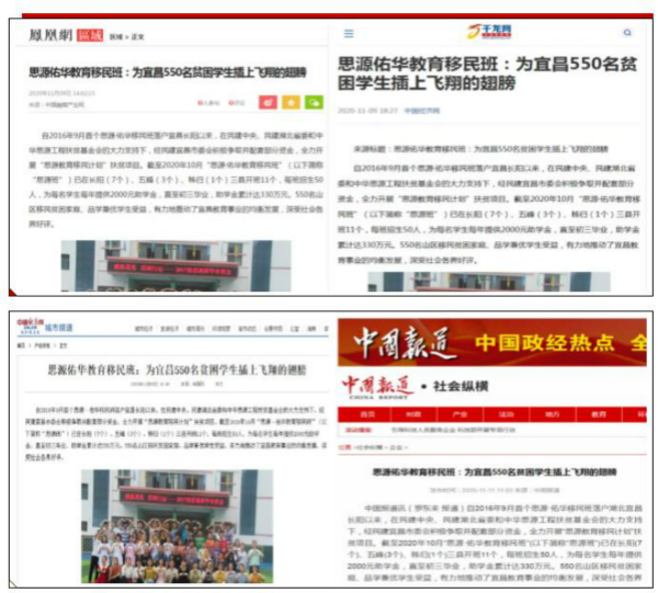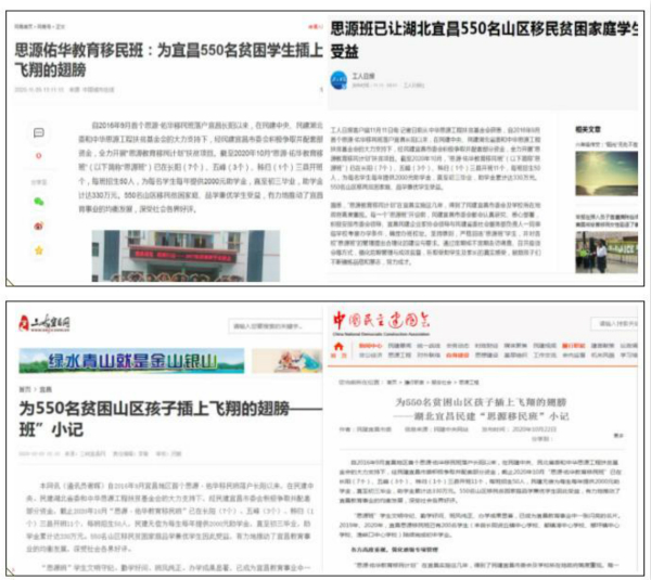 10月—11月,工人日报、凤凰网、中国经济网、中国报道、中国融媒产业网、中国城市在线、中国网、民建中央网站、湖北民建公众微信号、三峡宜昌网等十多家中央、省、市级媒体平台对此进行了密集报道。