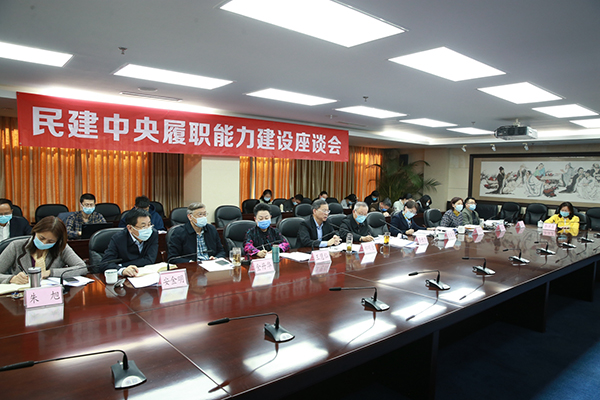 民建浙江省委主委陈小平,民建安徽省委主委李修松,民建江西省委主委孙菊生,民建湖北省委主委郭跃进,民建广西区委主委钱学明,民建陕西省委主委李冬玉,民建江苏省委原驻会副主委陶克中,民建吉林省委驻会副主委赵暘,民建上海市委驻会副主委汪胜洋,民建山东省委驻会副主委李旭茂以视频连线方式参加座谈,并分别就健全履职工作机制、提高履职培训的针对性和质量、深化调研机制建设、把握履职能力现状及变化趋势、积极开展建言践行、提高履职能力的主要方面、准确把握履职能力建设的内涵、推进履职平台建设、加强履职能力建设理论研究、加快建立新型智库等方面提出了具体建议。