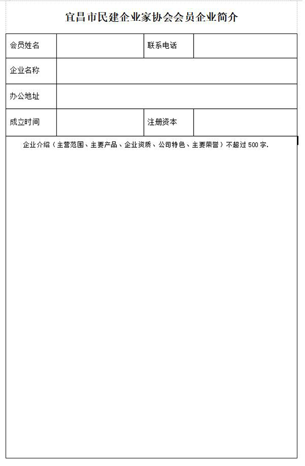 为加深会员之间相互了解,便于会员之间相互联系,进一步加强会员企业之间的交流,增进会员企业之间的合作,发挥民建会员企业群体优势,扩大协会整体影响力,协会拟编印《宜昌市民建企业家协会会员企业汇编》(以下称《汇编》)并下发到会员。现就有关事项通知如下: