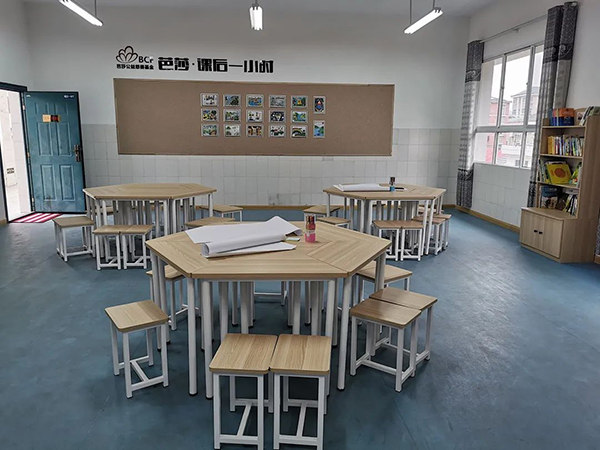 宋君慧一行首先参观了刚刚建设完成的救师口小学美育教室。现代化的教室让大家眼前一亮:教室内配置有崭新的教学触摸一体机、700余册用于分层阅读的精致图书、40多个可移动拼接书桌、一批益智玩教具、美术画材......学校负责人详细介绍了美育教室建设情况,他表示“芭莎·课后一小时”美育公益项目将使同学们的课后生活变得丰富多样,“线上+线下”的完整教学体系,有助于让孩子们看到更大更广阔的世界。