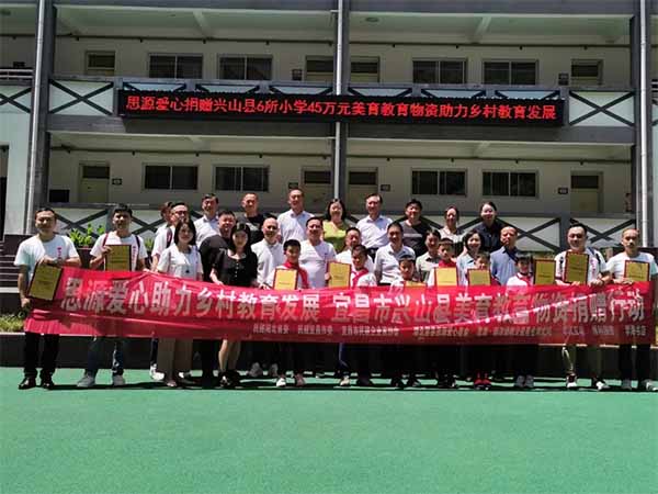 活动启动仪式在湖北省宜昌市兴山县水月寺镇高岚小学举行。爱心企业武汉卓讯互动信息科技有限公司、武汉博科国泰信息技术有限公司,为兴山县六所乡村小学捐赠一批价值45万元的美育教育物资,以艺术赋能乡村振兴,助力乡村儿童实现艺术梦想。