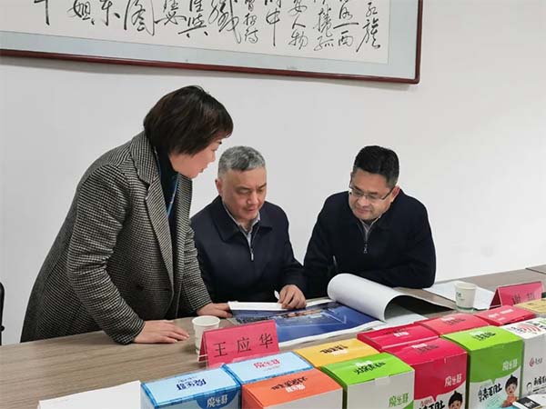 王应华一行首站来到湖北一致魔芋生物科技有限公司生物产业园,与公司负责人吴平座谈。2月21日,一致魔芋成功在北交所上市,成为中国魔芋第一股。借助上市契机,吴平决定加大企业技术创新力度,并持续加强了与高校科研院所的产学研合作。听闻一致魔芋即将高标准开建全新的研发中心与实验室,王应华表示赞赏。他强调,创新一定要学会打破现有思维,不被现实束缚,他建议一致魔芋研发中心及生物实验室建设要格外重视前期规划,规划须具有前瞻性,确保实现企业技术研发的先进性。