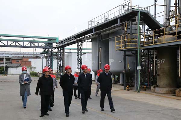 王应华一行第三站来到位于猇亭区的宜昌兴越新材料有限公司。深入厂区各生产车间参观,询问公司负责人王建文有关企业重大科技项目实施、创新平台建设、科技成功转化、研发投入等方面的情况。得知兴越投资6亿元在猇亭开工建设的7万吨有机硅新材料项目,和在内蒙古乌海市开启的配套内蒙古兴发集团新项目进展都比较顺利,而这一切都获益于企业持续不断的坚持科技创新的结果时,王应华对公司发展过程中的科技创新战略及长远规划前景给予肯定和认同,他期望公司能在国家产业政策春风的指引下,做大、做强、做优。