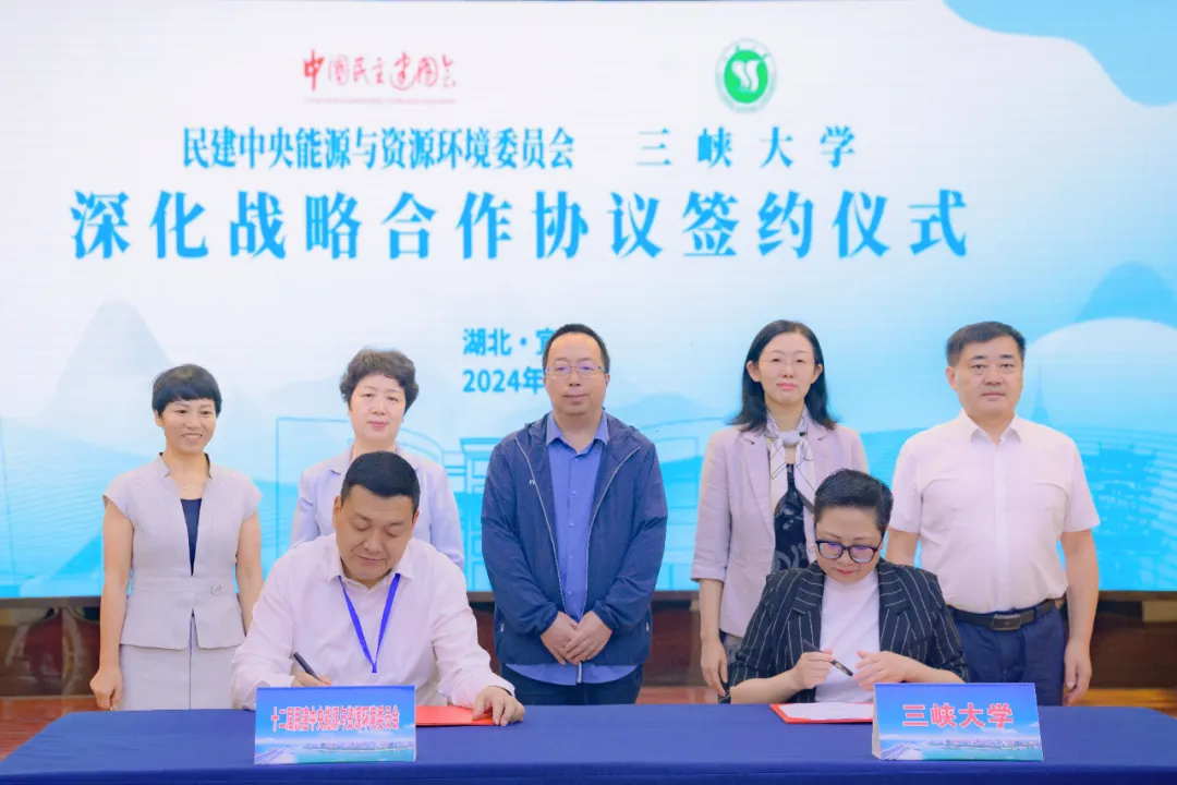签约仪式由民建湖北省委副主委、宜昌市人民政府副市长、民建宜昌市委主委张琼主持。民建中央调研部副部长丁亮春,民建湖北省委专职副主委刘运梅,中共宜昌市委常委、统战部部长张金安,三峡大学党委常委、副校长黄悦华,民建中央能源与资源环境委员会副主任叶明强、兰骏、张晓星、陆晓华、贾英涛、黄勇等领导现场见证签约仪式举行。
