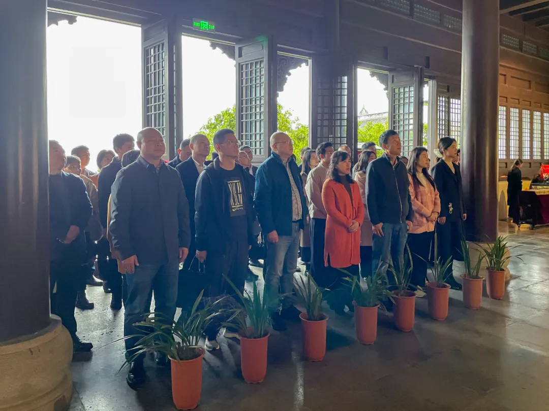 在屈原祠大殿屈原青铜像前,伴随着阵阵凝重深远的楚乐声,全体参训会员们礼拜屈原,用意寓高洁的兰草表达对屈原的深深崇敬。
