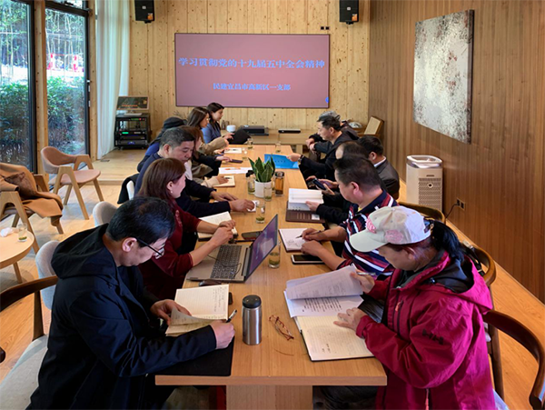 11月13日上午,民建宜昌高新区基层委员会一支部在三峡茶旅小镇悦茶里会客厅举行专题学习,集中学习了中共十九届五中全会精神,支部主委黄兰主持了本次专题学习活动。