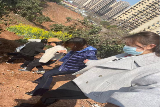 活动当天,阳光明媚。基层委员会会员们一到植树现场,发现道路陡峭,不易前行,我们仍坚持前进。虽然道路陡峭,但民建会员手牵手,脚抵脚,一步一步共同克服困难,艰难的来到植树现场。
