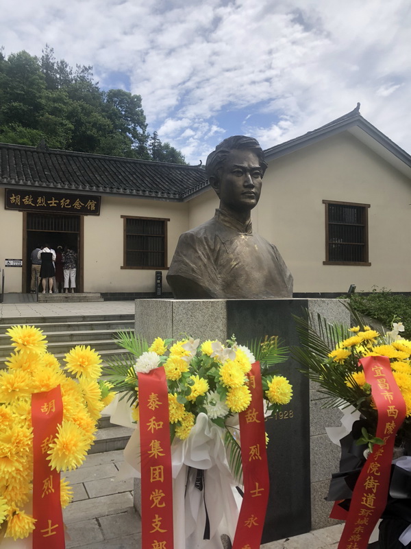 大家驱车前往宜都市五眼泉镇拖溪村,实地参观胡敌烈士纪念馆,听取工作人员讲述了宜昌市第一位共产党员、革命先辈胡敌的革命事迹并参观了胡敌烈士纪念桥等,通过这次实地学习,会员们感慨万分:对革命先辈胡敌烈士为了理想和信念付出年仅30岁年轻生命的革命事迹充满崇高敬意,对现今幸福和谐生活倍感珍惜,并立志为新时代民建社会服务工作投入更大的激情和努力。