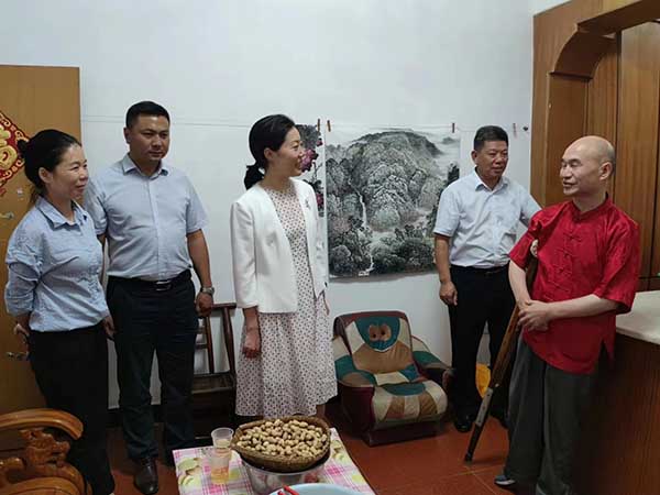 走访慰问组一行来到佘阳华家中,与佘阳华亲切交谈,询问了解他的家庭状况和身体情况,鼓励其坚定信心、继续创作,为大家带来更多更好的绘画作品,同时相信在自身努力下,生活会越来越好。