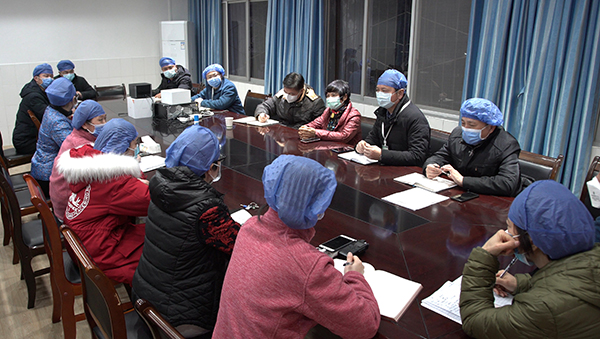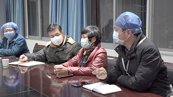2月12日深夜张琼到市三医院开会商讨筹措防护物质