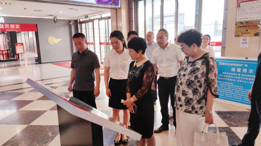 在金东山建材广场,张琼一行边走边看,实地考察市场内经营情况。看市场、进店面、听汇报,认真询问了解企业存在的困难和问题。