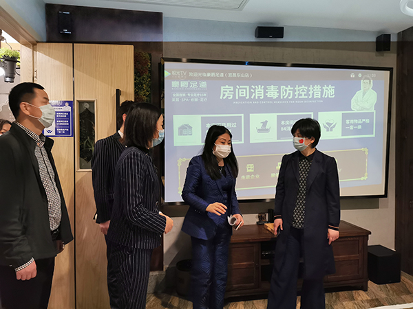 在李德兰的带领下,周正英副市长认真查看了豪爵营业场地卫生消毒过程及员工执行疫情防控有关细节,并肯定豪爵足道在防护工作中很周到、够细致。周正英副市长强调,各级政府部门及相关企业一定要严格执行中央、省市关于复工复产政策要求,希望企业在特殊情况下多多理解政府对于有序复工复产的各项安排,大家共同携手渡过当前难关!