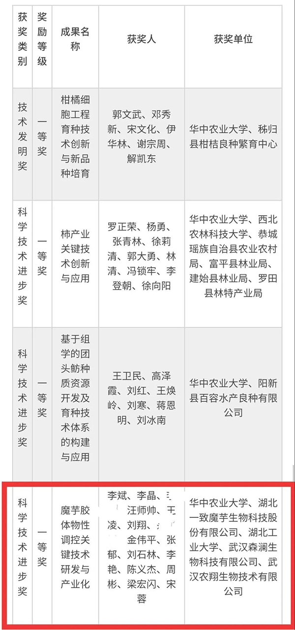 该项目由华中农业大学、湖北一致魔芋生物科技股份有限公司、湖北工业大学、武汉森澜生物科技有限公司、武汉农翔生物技术有限公司联合完成。
