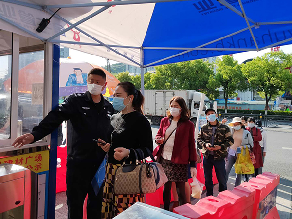 3月18日,金东山家居建材广场获批成为宜昌同行业第一家复工企业。因为是开放式卖场,入口多,人员进出频繁,为确保市场经营环境和人员安全,市场花费30余万元从杭州引进宇视智能人脸识别、自动测温、口罩检测防疫系统,市场严令在规定进场入口执行“扫码+测温+戴口罩”制度,所有人员绿码通行,红黄码禁入。一线安保队员日夜防守,执行铁的命令。