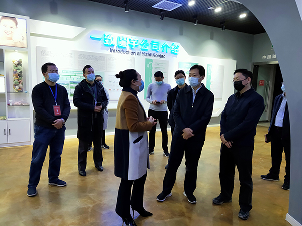 各级领导关心一致魔芋发展。图为今年3月宜昌市委常委、常务副市长陈惠霞一行到一致魔芋调研复工复产情况。
