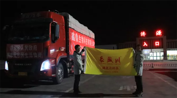 12月23日,湖北省人民政府捐赠蒙古国生活物资“启运仪式”在鑫鼎生物科技园举行,民建会员企业鑫鼎生物科技有限公司捐赠蒙古国的青砖茶从宜昌市启运,将辗转1800余公里至内蒙古锡林郭勒盟二连浩特市二连外运海关监管仓库等待出境。车队一出发就引起网络热议,相关话题登上微博热搜榜。