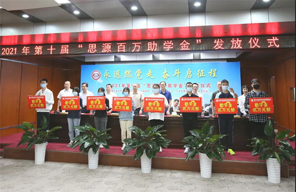 ▲ 第十届“思源百万助学金”发放现场,61名受助学生收到120.5万元助学金。