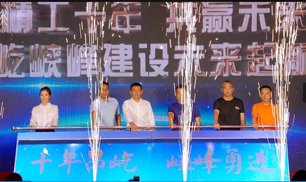 在主持人慷慨激昂的3、2、1倒计时后,领导嘉宾们共同启动鎏金台,象征着屹峡峰建设下一个十年正式起航!