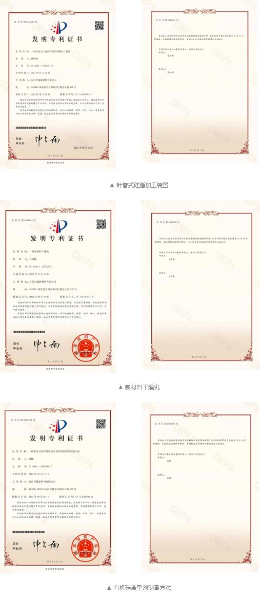 一直以来宜昌兴越新材料有限公司坚持以科技研发为核心,坚持走绿色发展道路,深入实施了产品升级、工艺提升,现已拥有专利37项,申请立项研究开发项目20项,自行投资实施转化9项。此次新取得的三项发明专利证书是该公司倡导技术创新和技术革新的有效实践和重要体现,对于公司自主知识产权的保护以及公司核心竞争力的提升有着积极的影响。未来,宜昌兴越新材料有限公司将加快研发步伐,抓住新机遇,迎接新挑战,致力于打造具有影响力的高新技术企业,争做有机硅下游的行业领跑者。