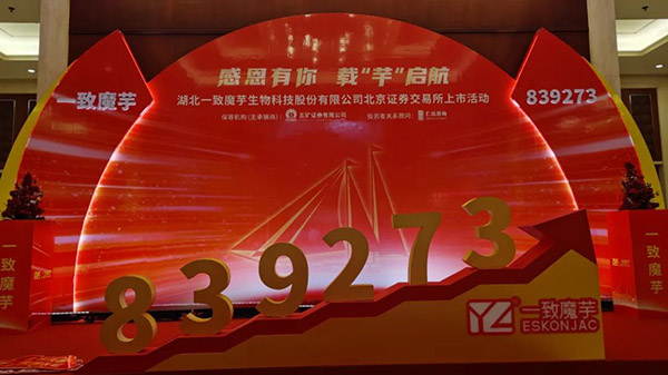 2月21日上午9时许,随着开市宝钟敲响,民建会员企业湖北一致魔芋生物科技股份有限公司正式登陆北京证券交易所,股票代码为839273,成为中国魔芋第一股、宜昌市首家北交所上市公司、宜昌民建会员企业第二家上市公司。当日,一致魔芋采取“现场+云直播”的方式举办了上市仪式。市委书记熊征宇在宜昌城区出席仪式。