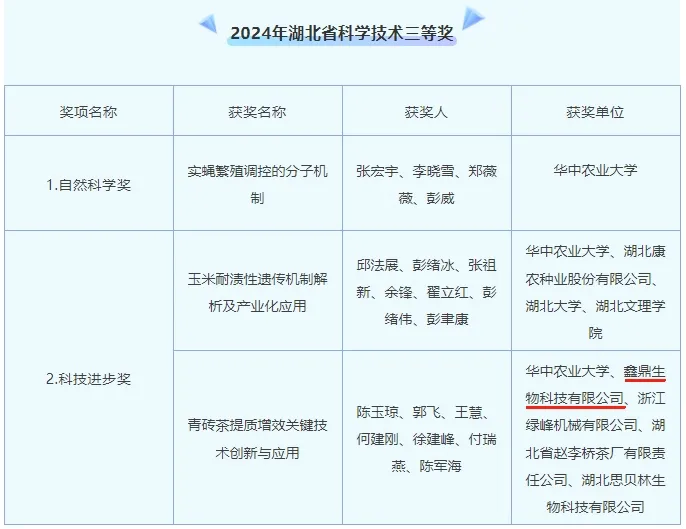 1月6日下午,湖北省科技大会在武汉洪山礼堂举行,宜昌民建会员企业鑫鼎生物科技有限公司荣获2024年湖北省科学技术三等奖。