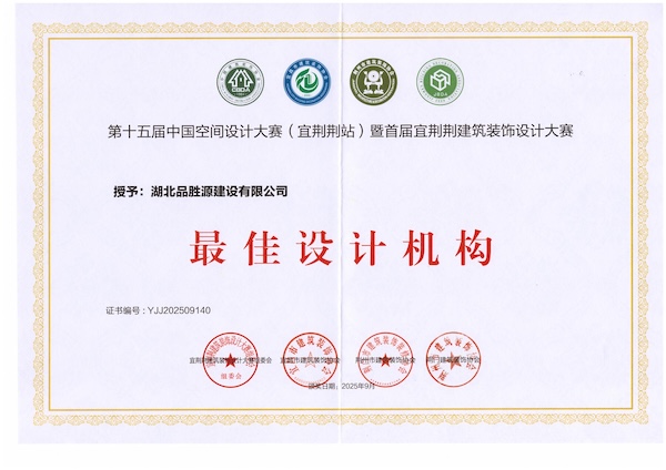 在这场高规格专业赛事中,品胜源的综合实力获得评审团全维度认可,工程类作品以“工艺精度与设计创新双优” 的突出优势,摘得工程类一等奖;方案类作品凭借对空间需求的深度解构、前沿设计语言的灵活运用,斩获方案类三等奖;更因长期在空间设计领域的深耕贡献、完善的服务体系及广泛的行业影响力,荣膺最佳设计机构奖”,实现“作品实力+机构口碑” 的双重突破。