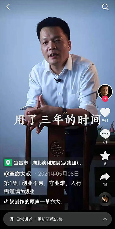 2020年号称直播+带货元年,当年全国电商直播超过2000万场,一度被认为是开启新经济大门的“金钥匙”。面对新媒体汹涌而至的浪潮,澳利龙及时拥抱变化,大胆结合实际,在全新的传播格局与平台上再度创新经营模式。他们将主战场锁定在抖音、快手等短视频高流量平台,员工们开始转型走上一线当起了主播,一个个促销活动、吸睛话题吸引了大量粉丝,就连身为董事长的汪革命也频频出镜,为公司代言给员工打气。