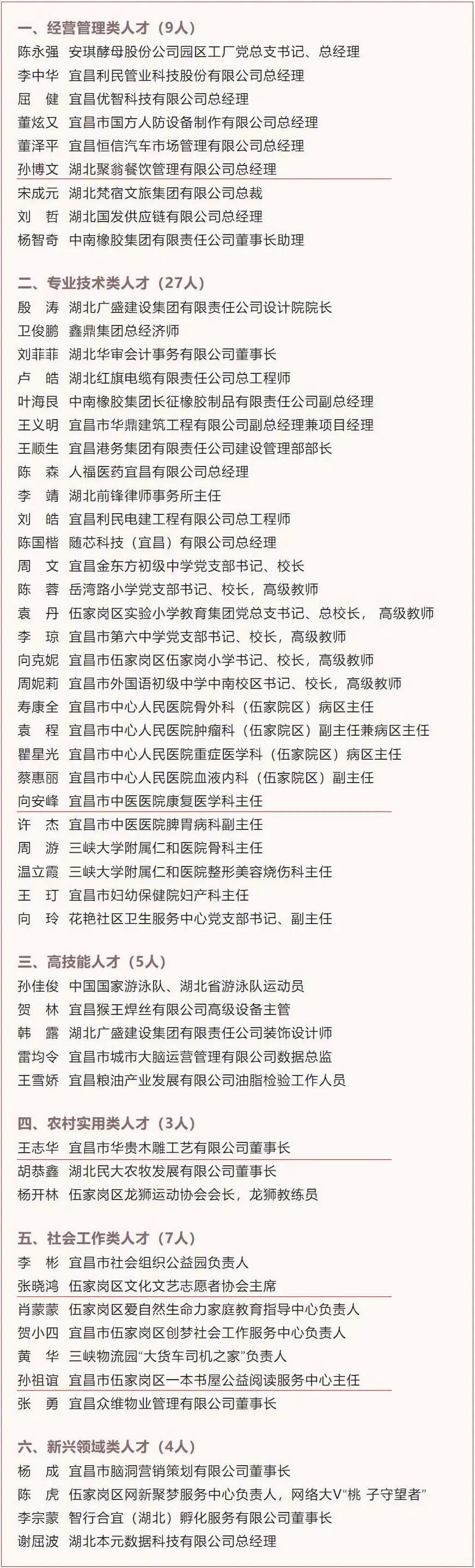 近日,《伍家岗区委党的建设和人才工作领导小组办公室关于命名伍家岗区第五届区管优秀人才的决定》对外发布,宜昌民建孙祖谊、向安峰、张晓鸿、孙博文、王志华5名会员榜上有名。