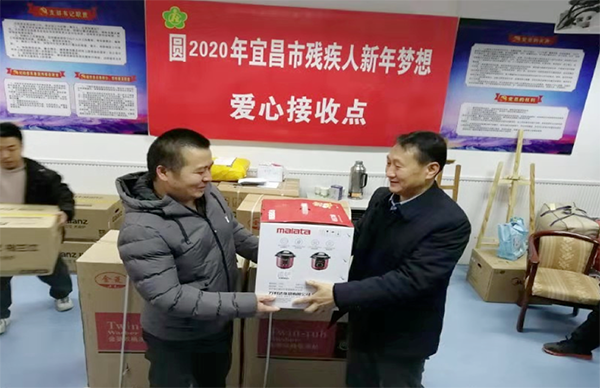 12月25日,民建点军基层委员会会员黄连仲来到专班,给10户残疾人家庭送来了置物柜、烤火桌、微波炉等物资;