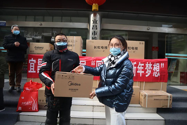 2021年元旦,宜昌市第十四届“圆残疾人新年梦想”活动西陵民建三支部“圆梦”物资发放在市残联举行,20户残疾家庭实现了今年的新年梦想。