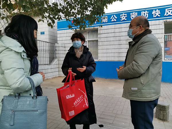 上:民建西陵基层委员会代表王志华 发放“圆梦”物资