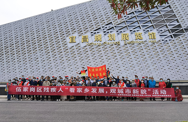一大早,游览观赏团自和平公园乘车出发,先后抵达了磨基山森林公园、奥体中心、东方年华等地实地参观游览。在宜昌市城市规划馆内,从宜昌远古发展到未来规划的参观中,残疾朋友们深刻感受到生命的力量,对未来有了更多期待和信心。参观现场,伍家岗区委统战部常务副部长易启君为残疾朋友们鼓劲加油,希望他们在活动中,收获到快乐更收获信心和希望。