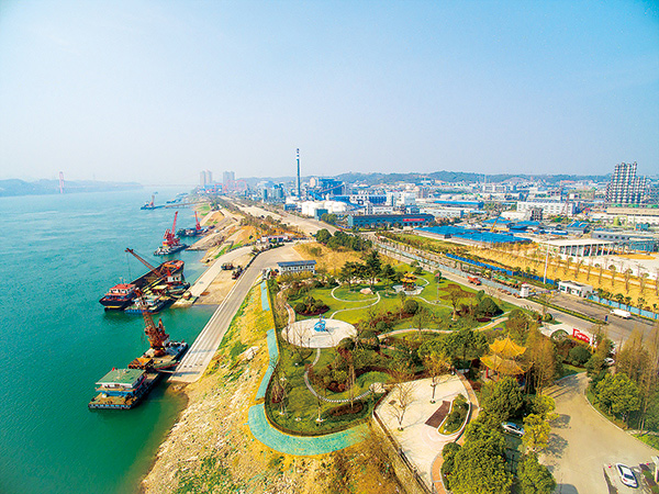 近年来,湖北省宜昌市大力推进长江生态环境修复与治理,在猇亭区腾退的长江岸线上,424公园建成开放,昔日的煤场变成了附近市民休闲小憩、观赏美景的好去处。杨青 摄