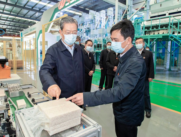 4月10日至12日,中共中央政治局常委、中央纪委书记赵乐际到湖南调研。这是4月10日,赵乐际在郴州粮油机械有限公司调研。新华社记者 李涛 摄